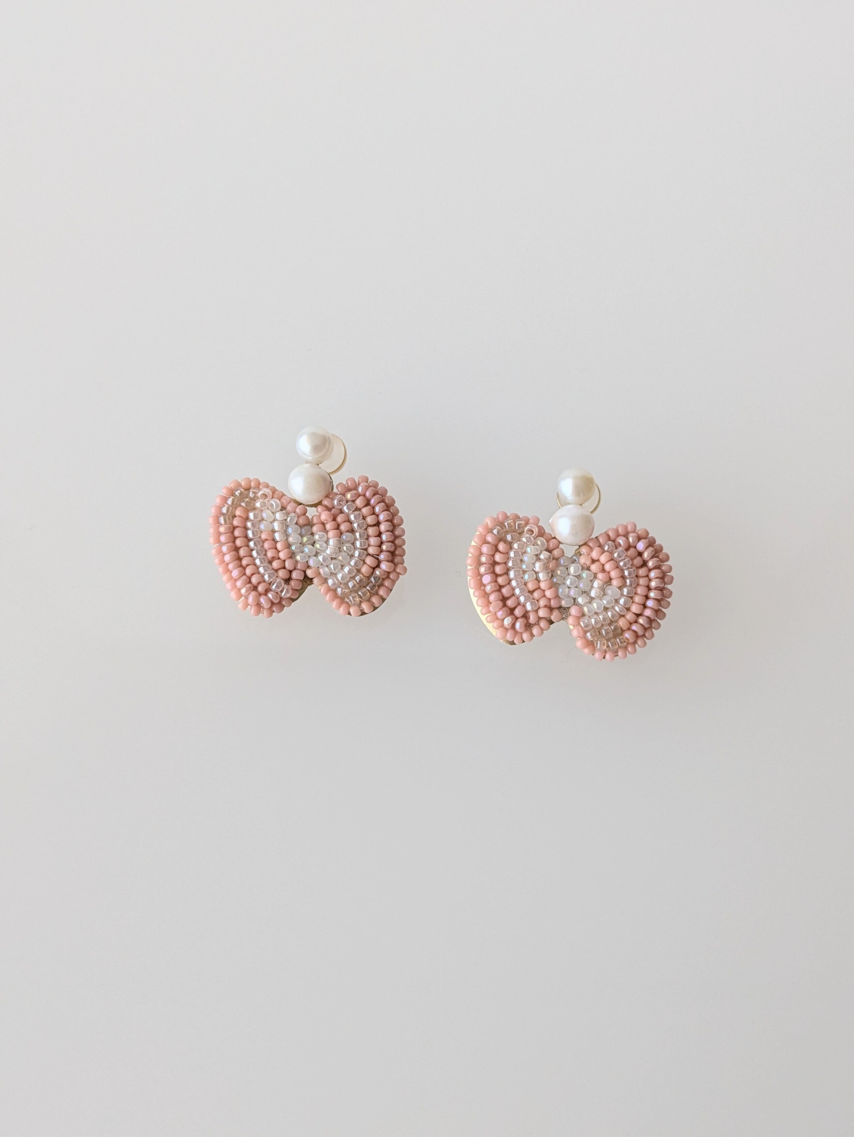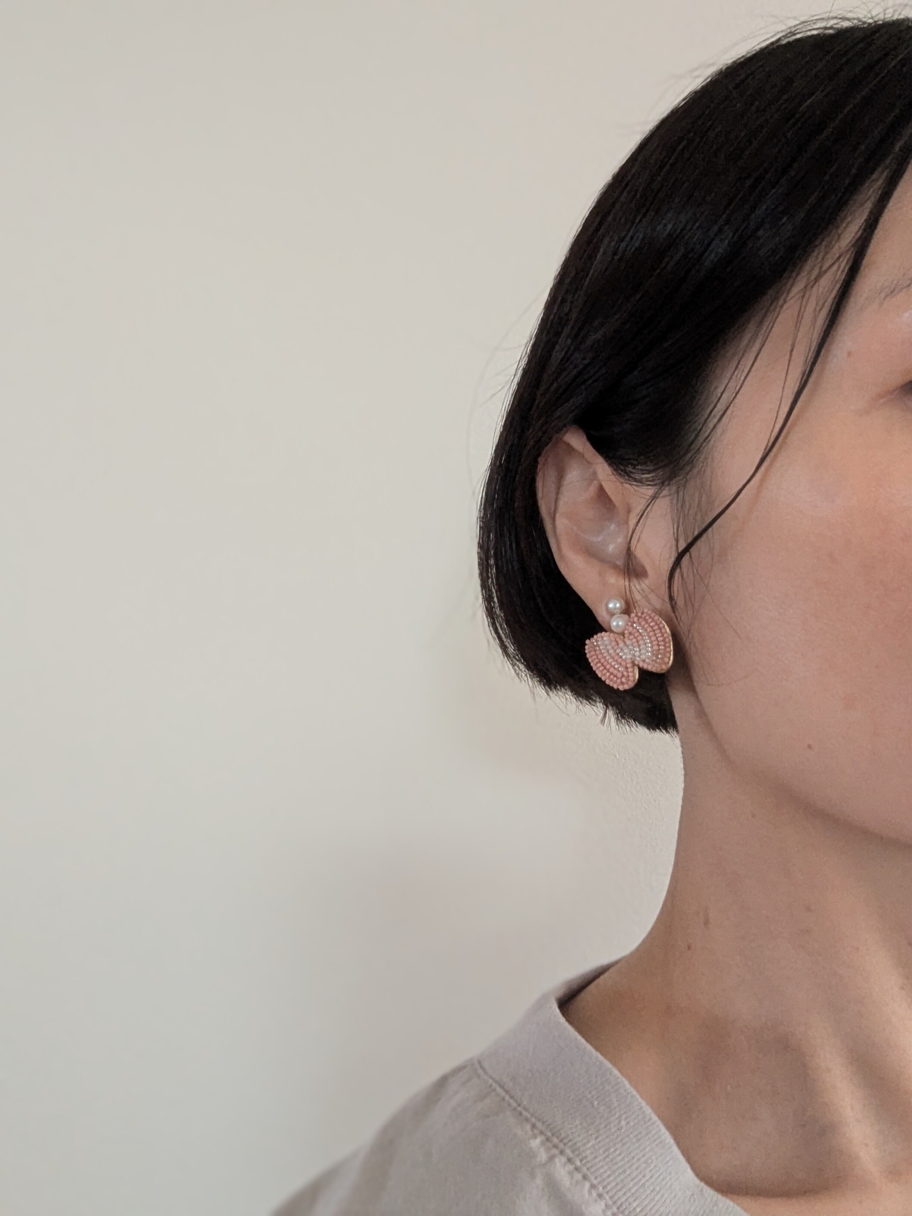 繊細なビーズ刺繍でできた、小ぶりで控えめな耳飾りです