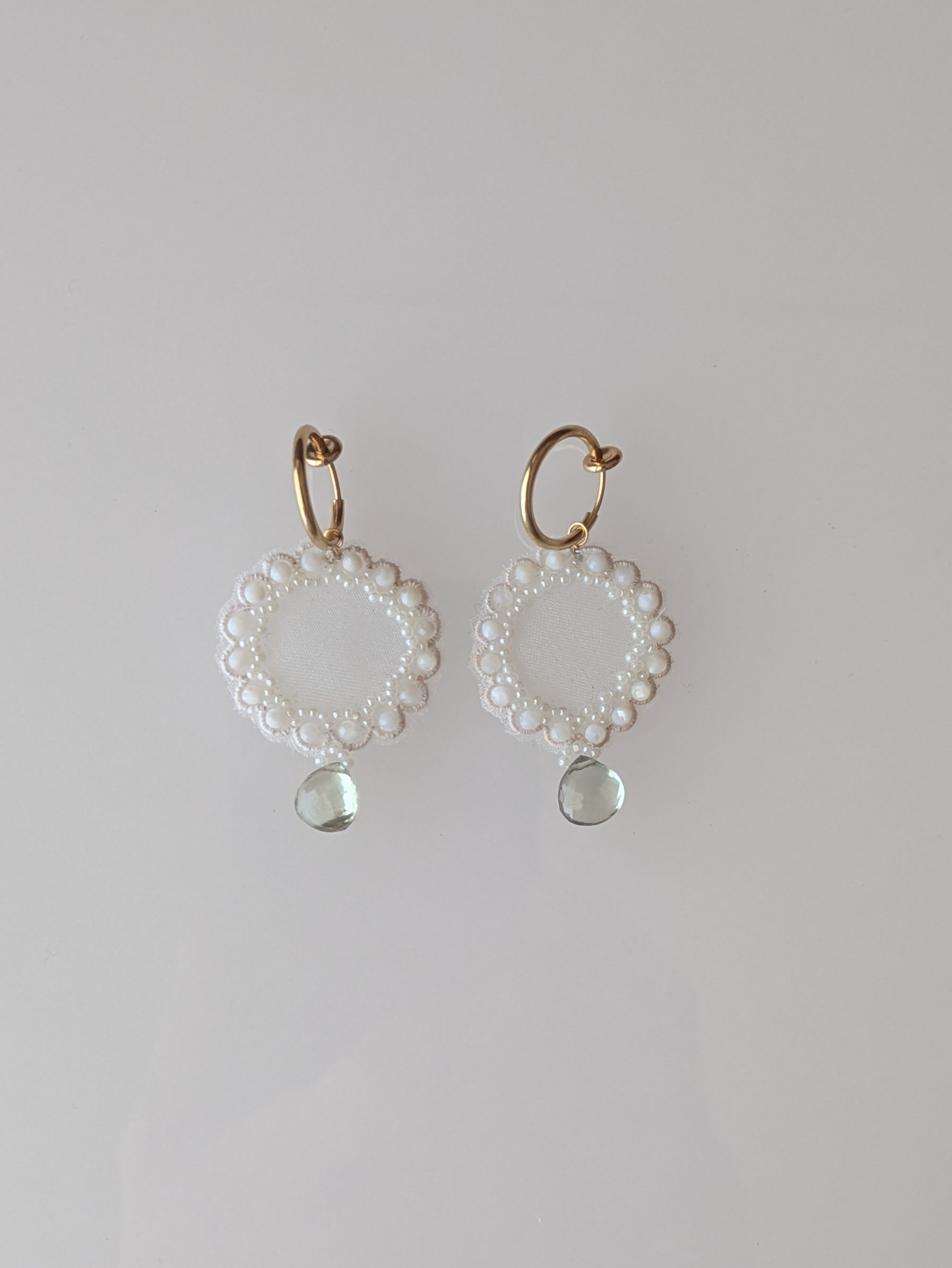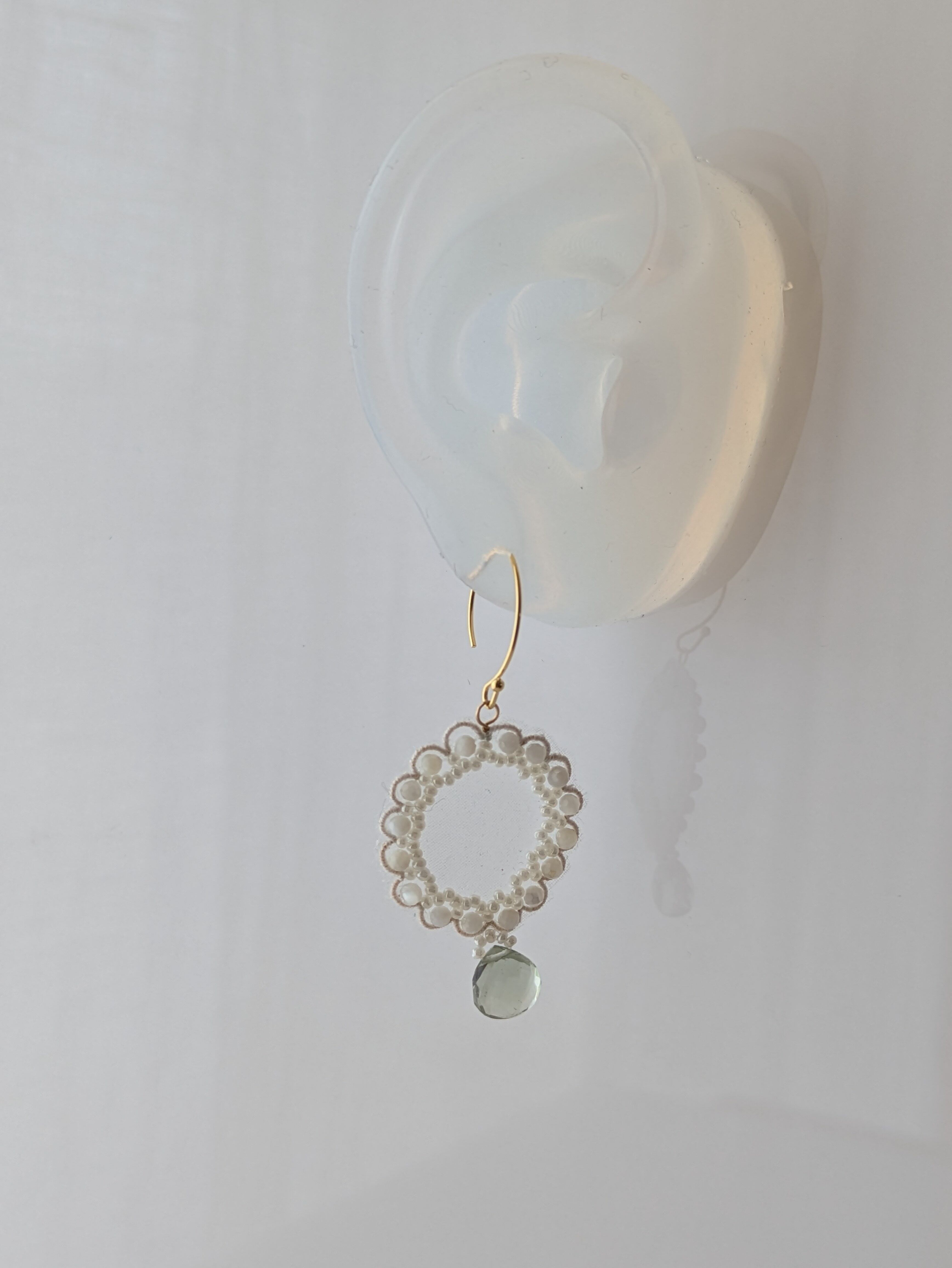 繊細なレースを包み込むようなグリーンカラーのアメジストが、清楚で上品な印象を与えてくれます